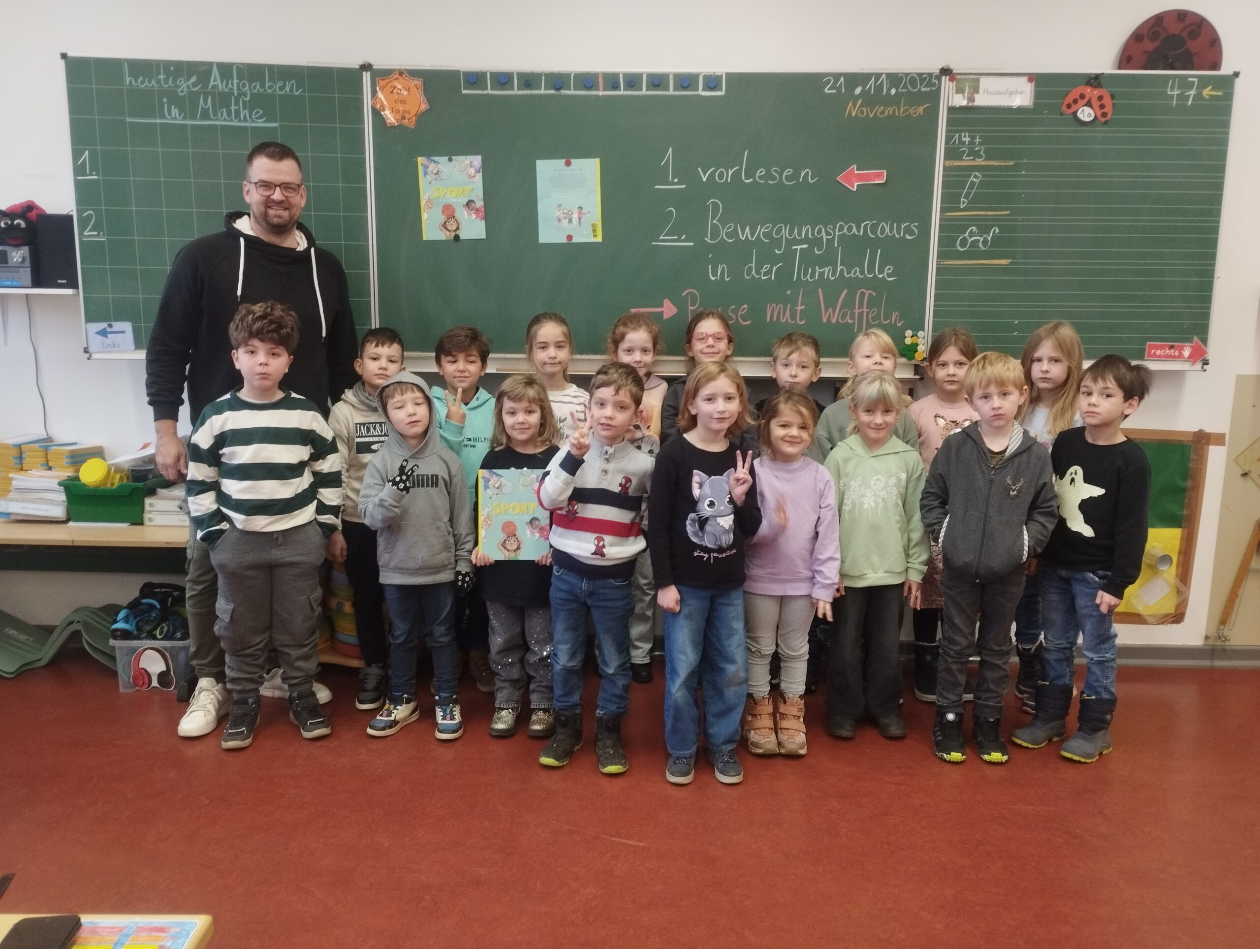 Am 22.11.2025 haben wir in der Schule den bundesweiten Vorlesetag gefeiert. Es gab für unsere Grundschüler und die zukünftigen Erstklässler des kommenden Jahres vielfältige Lese-, Bastel- und Lernangebote. Es wurde sowohl für die Klassen 3 und 4 als auch für die Klassen 1 und 2 aus alters- und interessenbezogenen Büchern vorgelesen. In Klasse 1 und 2 haben die beiden Klassenlehrer jeweils ein Buch vorgestellt. Die Kinder aus Klasse 3 und 4 wählten aus verschiedenen Angeboten vorab je zwei aus, sodass sie in den ersten beiden Stunden und in der 3. und 4. Stunde ein anderes Buch vorgestellt bekamen.