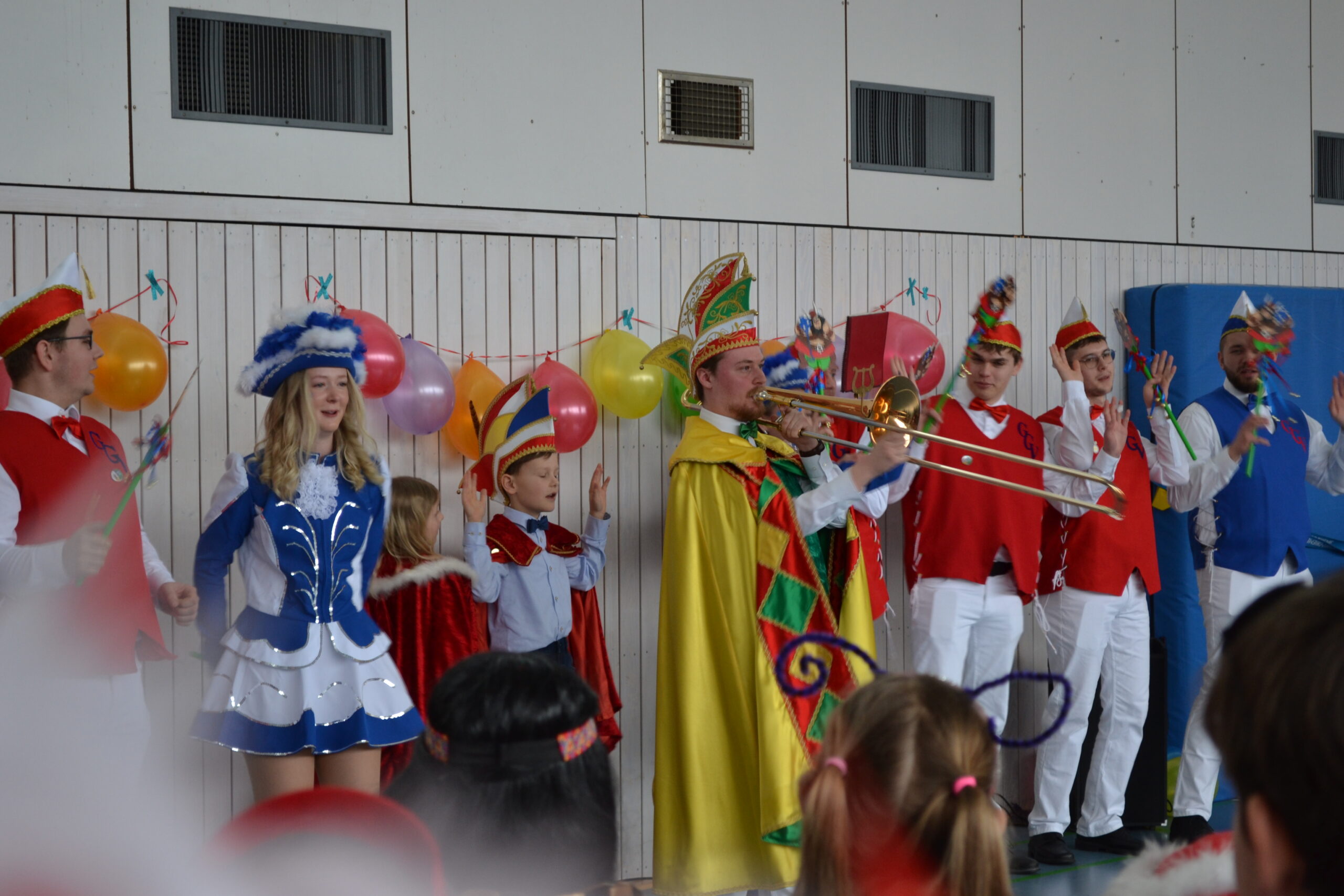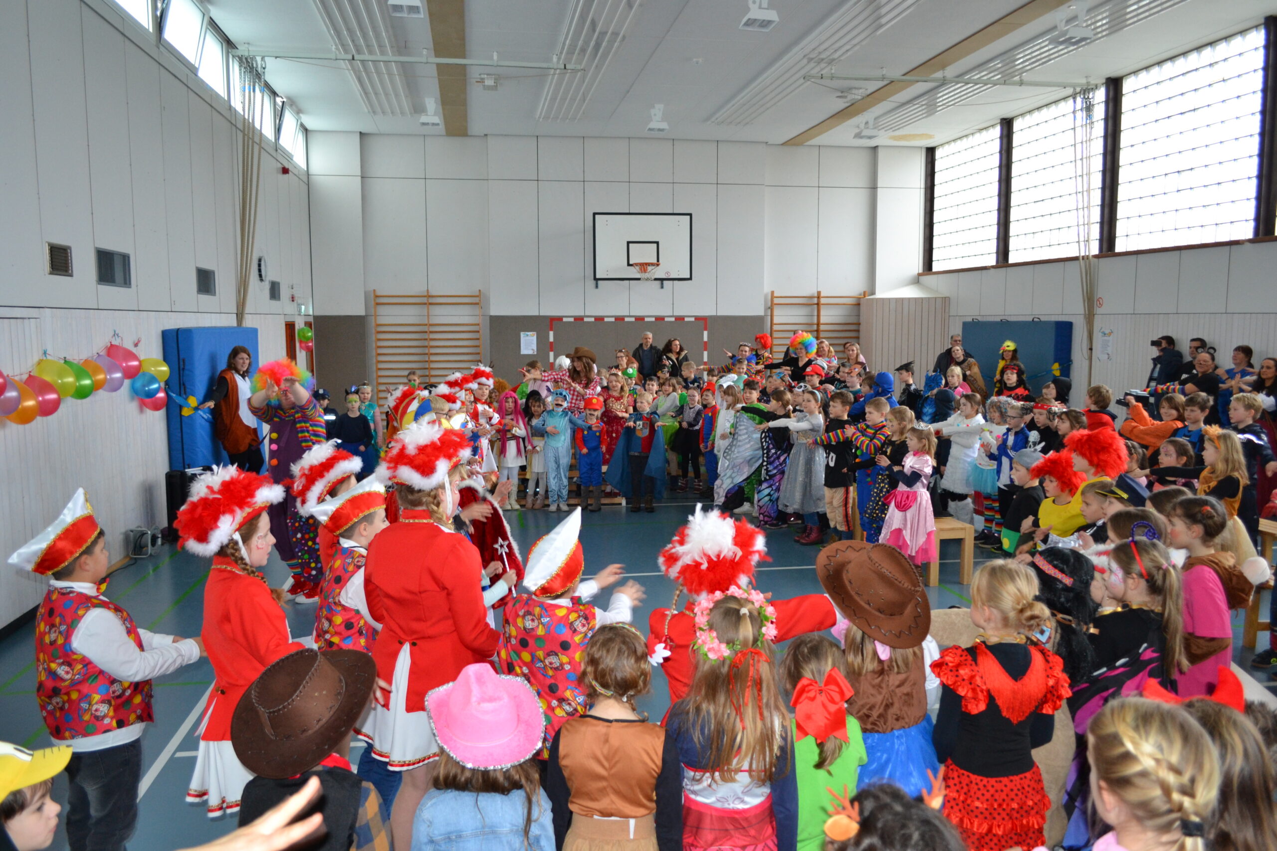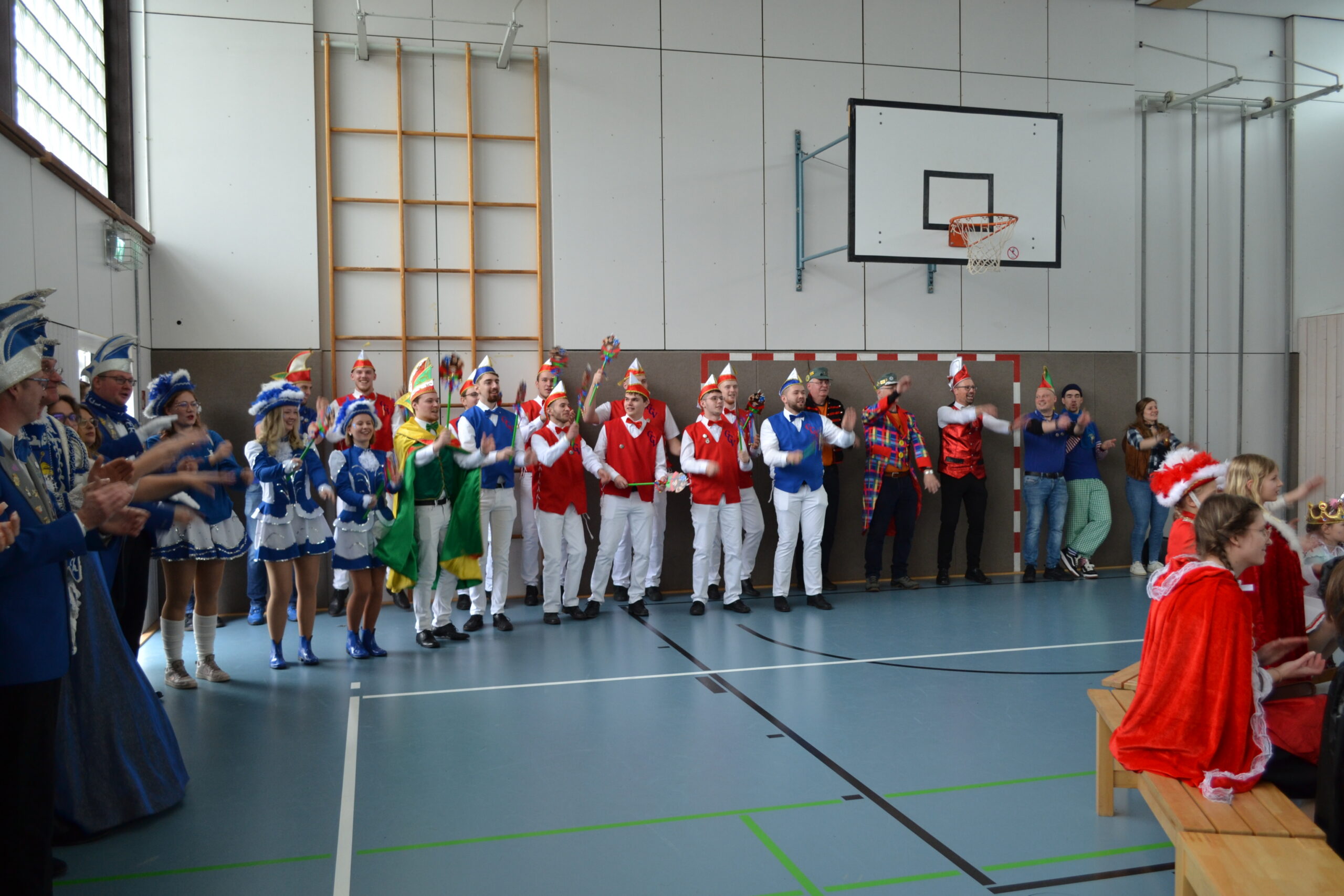 Nach der großen Pause stand dann der Höhepunkt des Tages an. Alle Kinder, Lehrer, Eltern und Besucher fanden sich in der Turnhalle ein und konnten dort gemeinsam die Kinderprinzen und -prinzessinnen und auch die „großen“ Prinzen mit Abordnungen der Karnevalsvereine aus Giershagen, Bredelar und Beringhausen begrüßen.